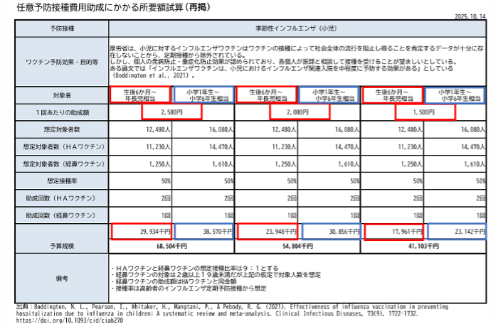 ワクチン施策の適正な予算額への修正、ならびに小児インフルエンザワクチンへの予算配分